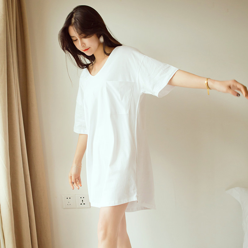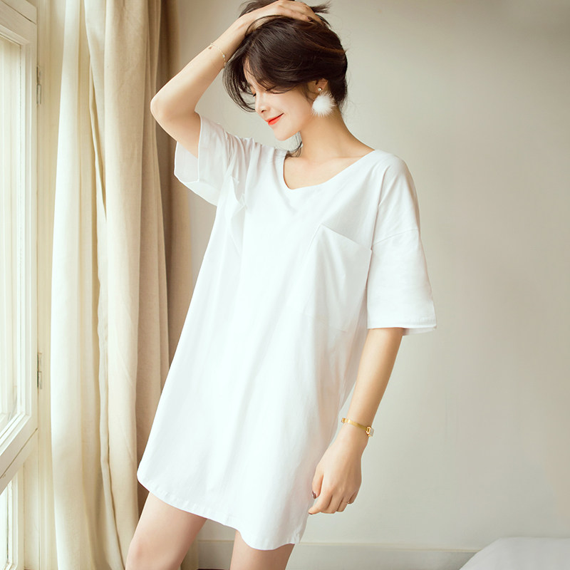 性感纯棉睡裙女夏季带胸垫短袖宽松大码白t睡衣薄款家居服可外穿