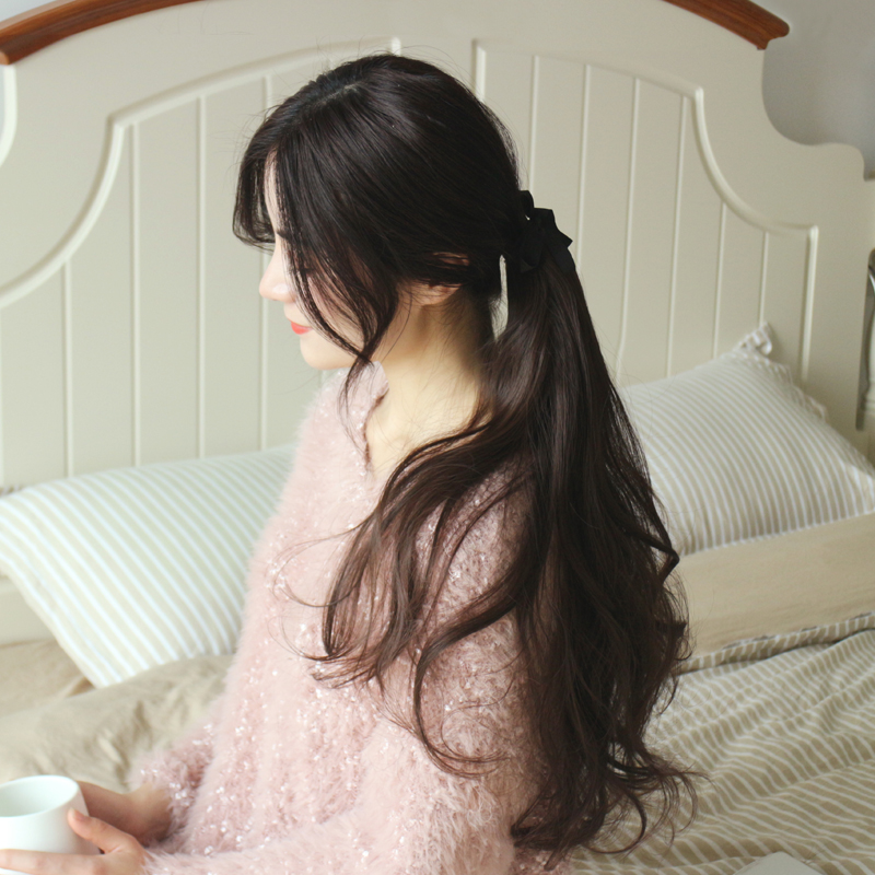 低马尾假发女 绑带式无痕假马尾大波浪长发尾辫子 自然中长卷发片