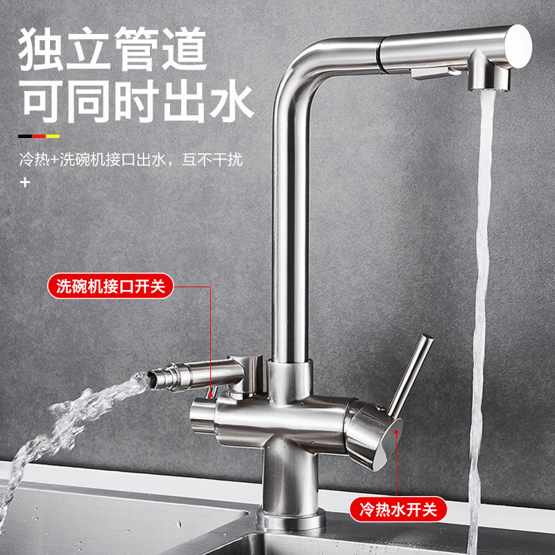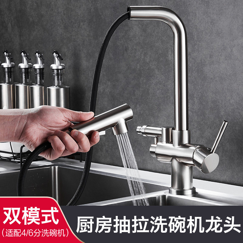 洗碗机水龙头厨房水槽洗菜盆接4分6分专用多功能抽拉式可旋转龙头