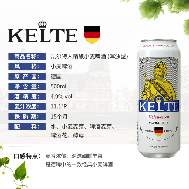凯尔特人德国原装进口精酿小麦啤酒500ml*24听(浑浊型)整箱装