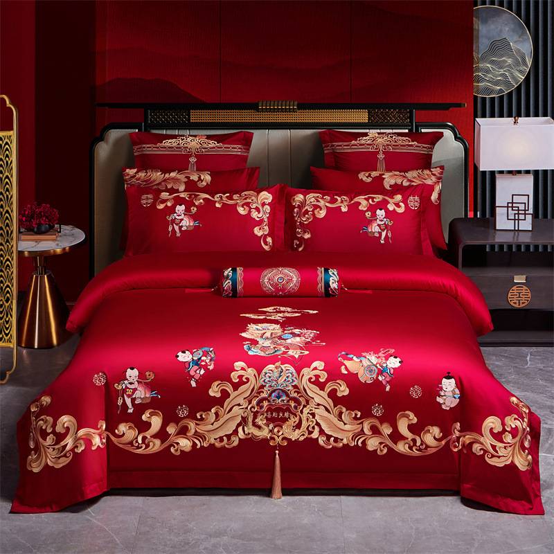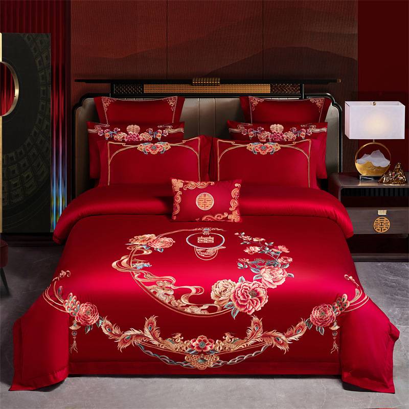 全棉婚庆四件套结婚 大红刺绣床上用品纯棉婚嫁八件套喜被婚床