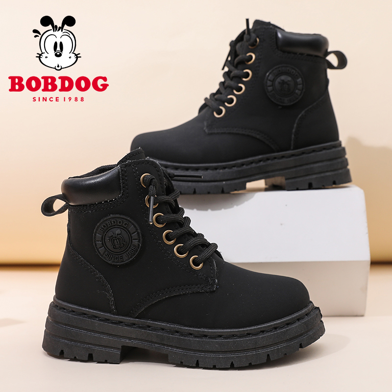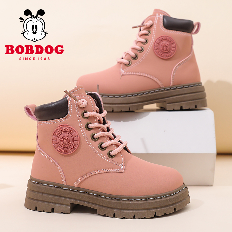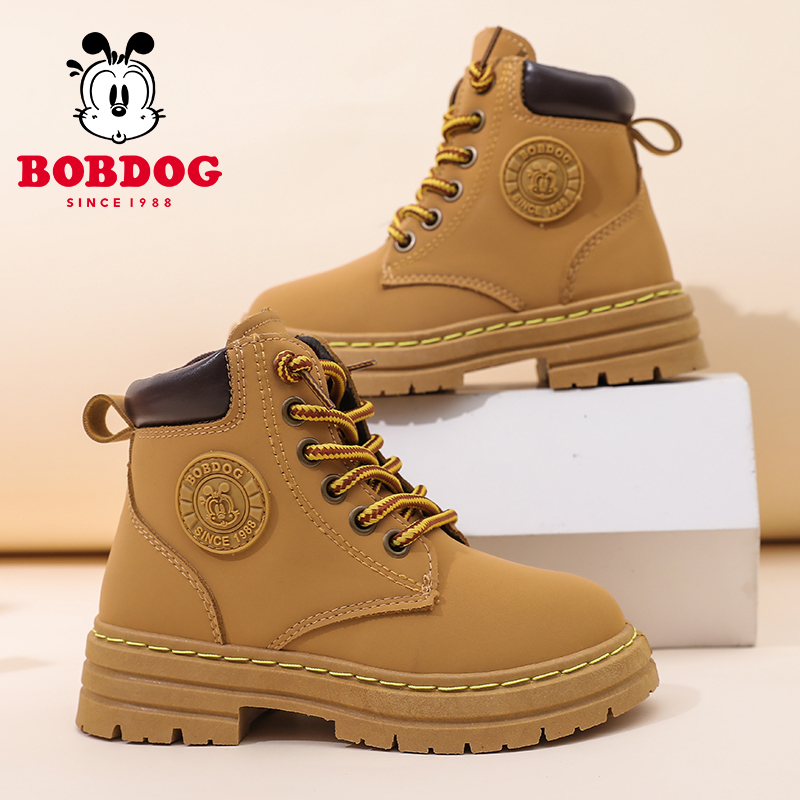 巴布豆童鞋女童马丁靴儿童靴子大黄靴加绒二棉鞋休闲冬季男童短靴