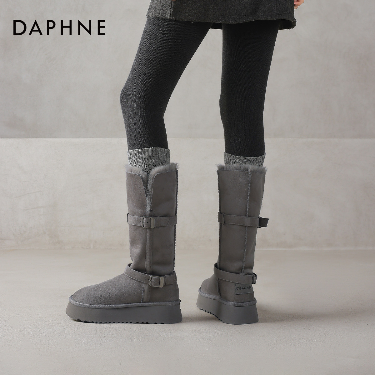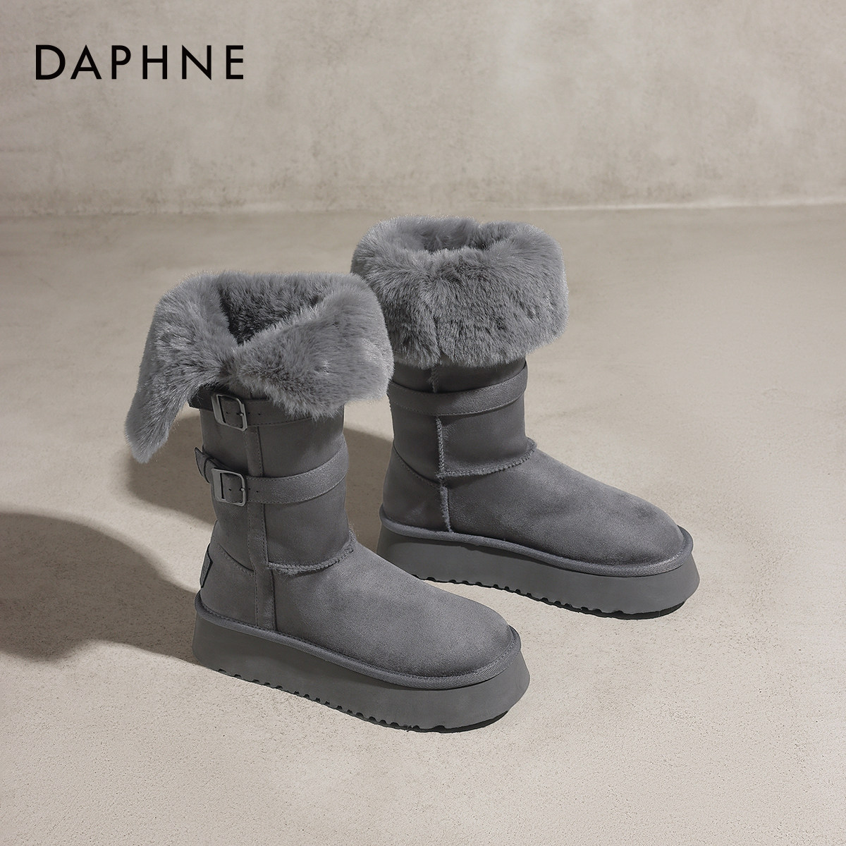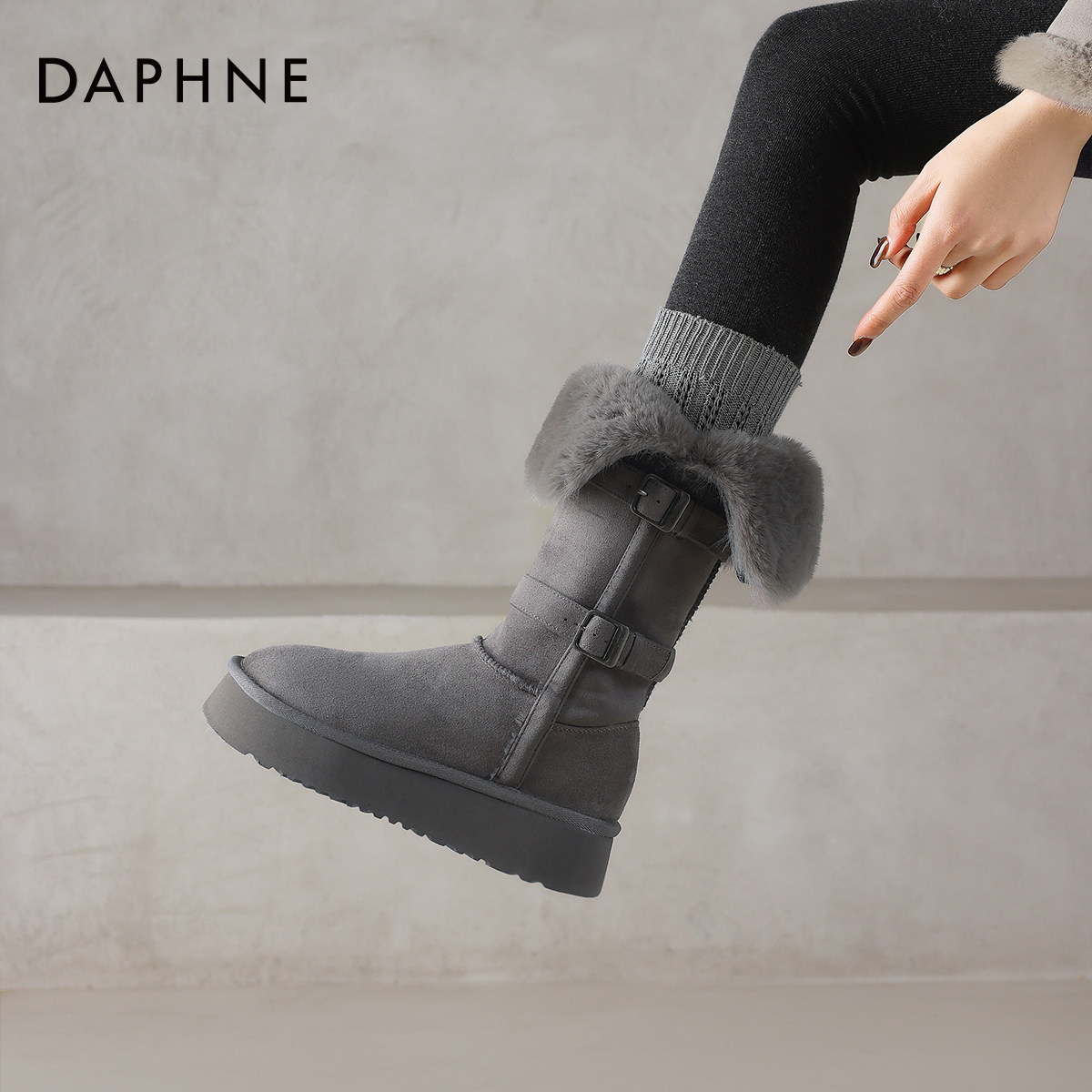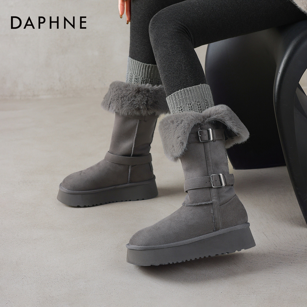 达芙妮厚底雪地靴女加绒中筒棉靴