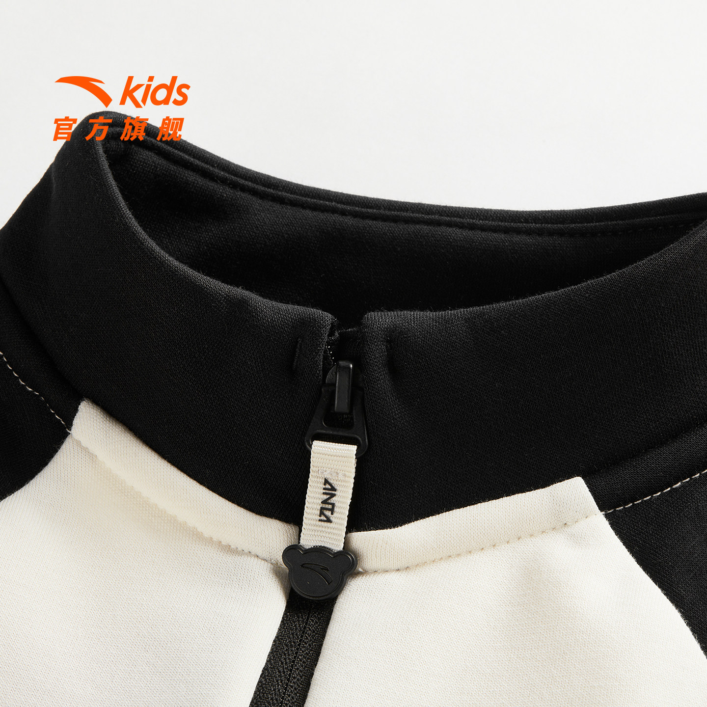 安踏儿童男小童针织套头衫冬款上新舒适保暖儿童立领熊猫加绒卫衣