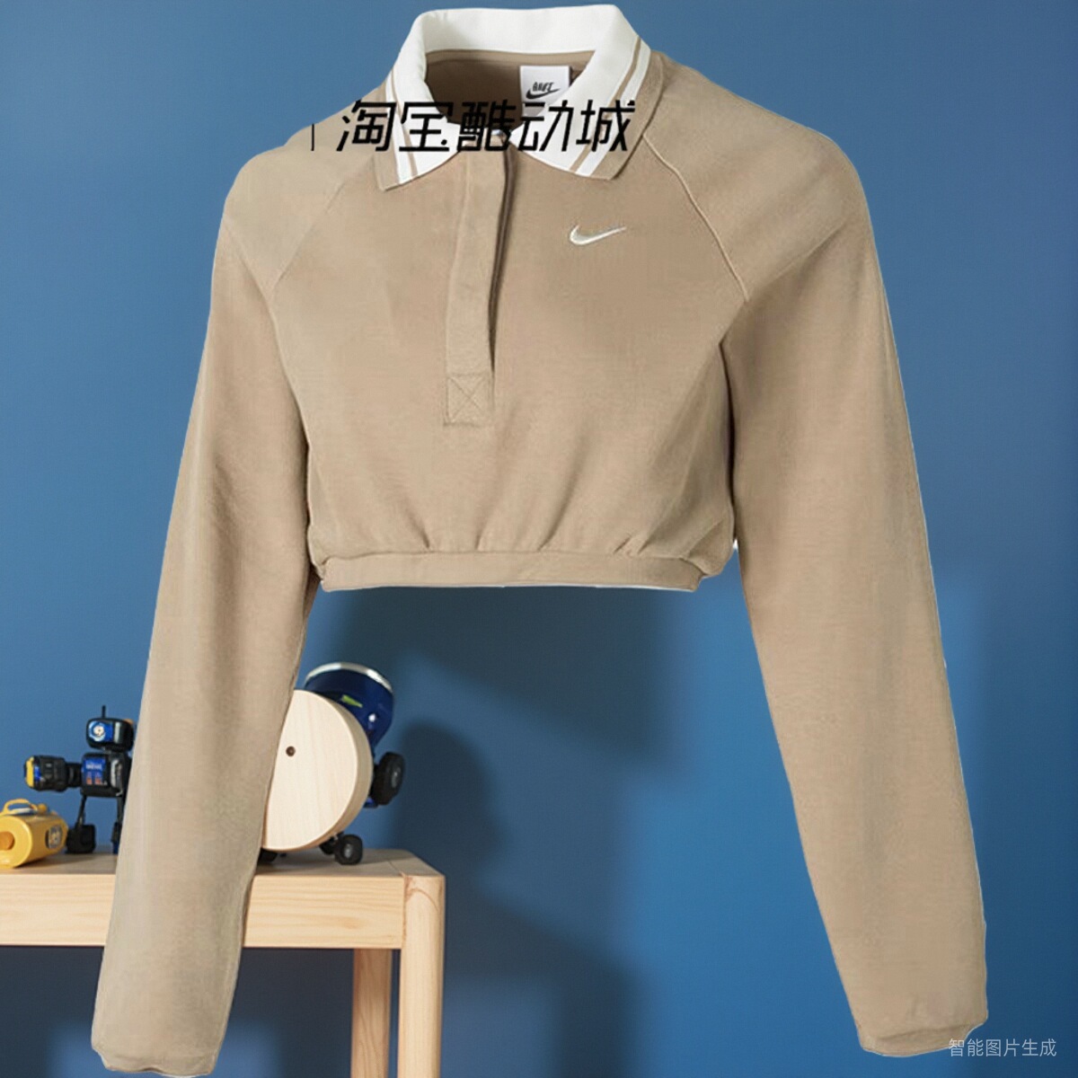 Nike/耐克 正品春秋女子运动休闲翻领时尚短款长袖T恤 FN1881-247