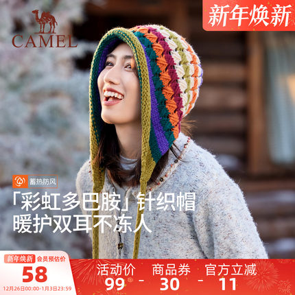 骆驼民族风针织帽女钩针护耳毛线帽子秋冬川西北新疆旅游保暖帽