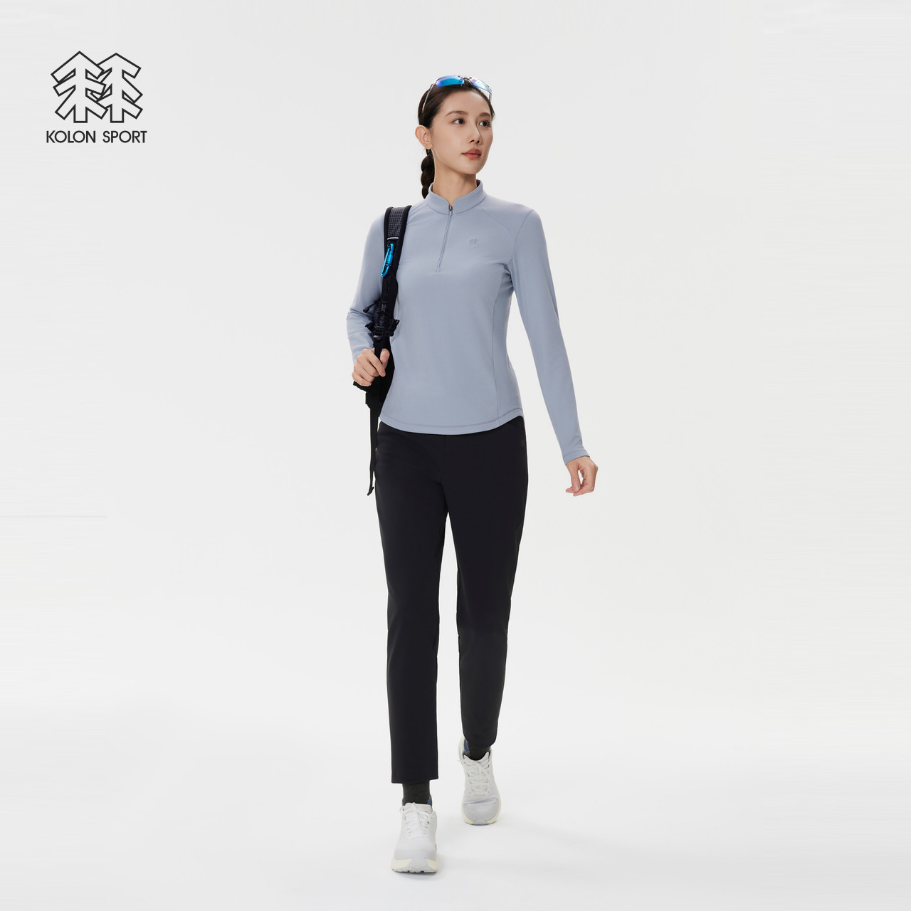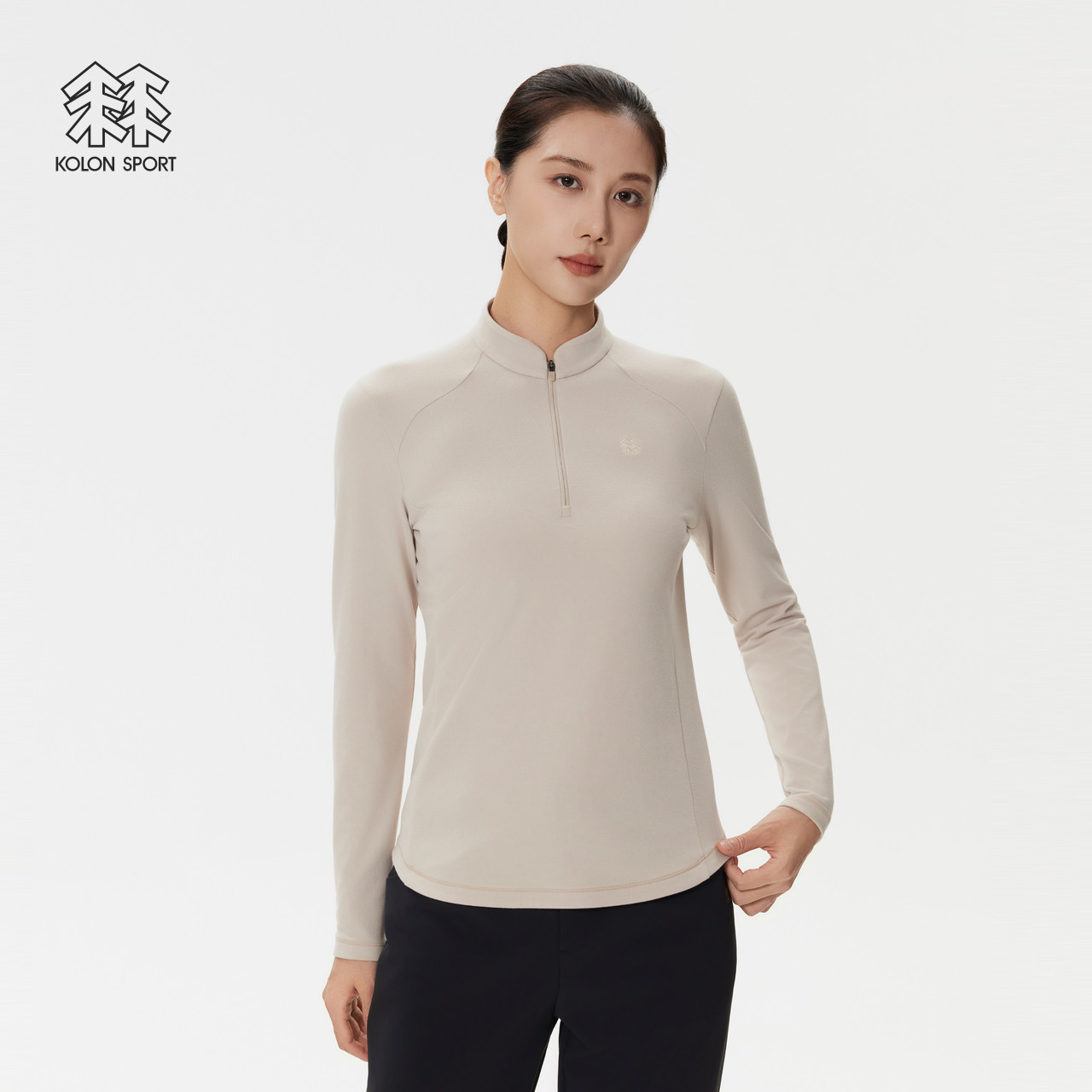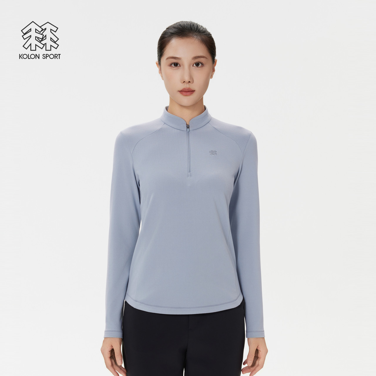KOLON SPORT可隆户外休闲衣女士仿羊毛户外运动内搭半拉链长袖T恤