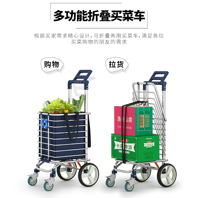 购物买菜小拉车j大轮静音可折叠便携快递小车老人手推车拉货拉杆