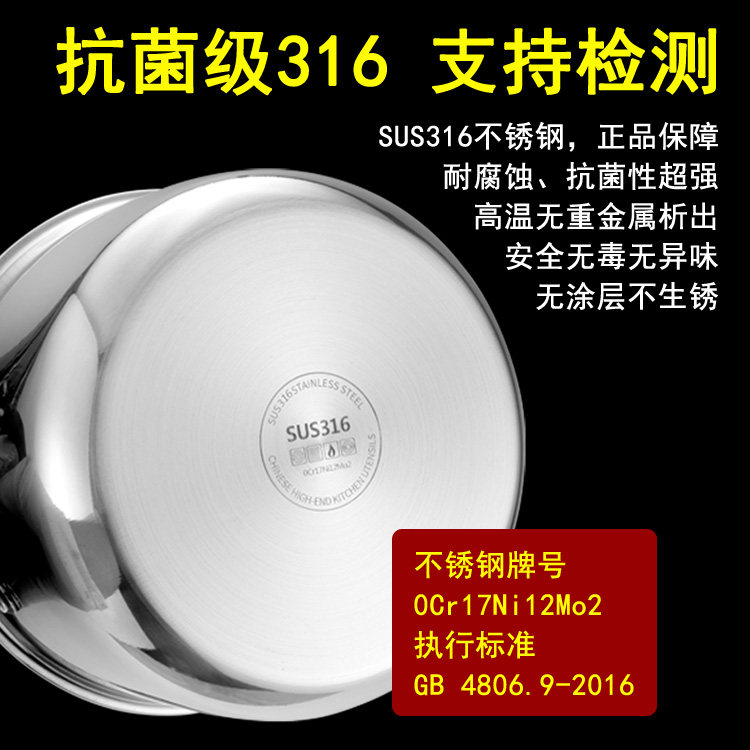 德国316不锈钢小汤锅特厚不粘奶锅家用煲汤煮粥奶瓶消毒锅16/18cm