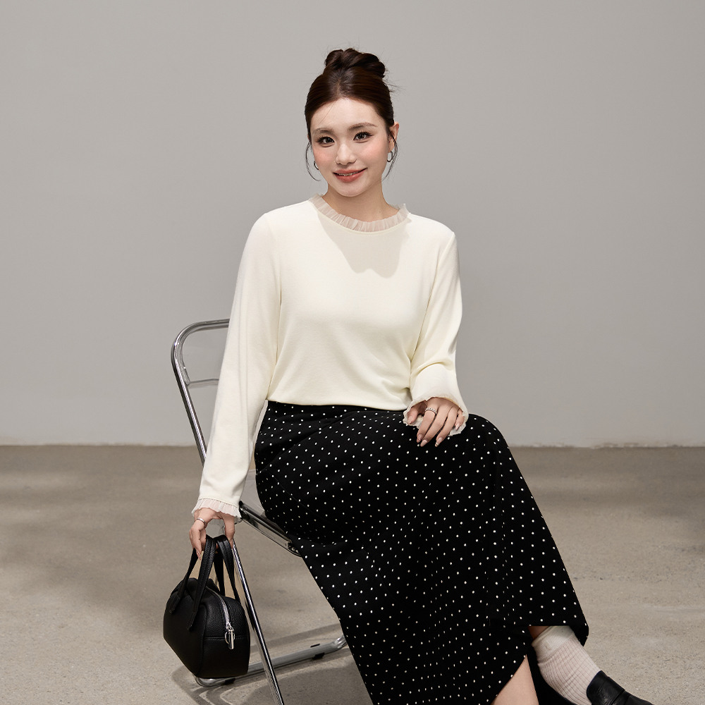 10.20日新品小波家2025冬季胖mm韩系网纱拼接圆领内搭正肩打底衫