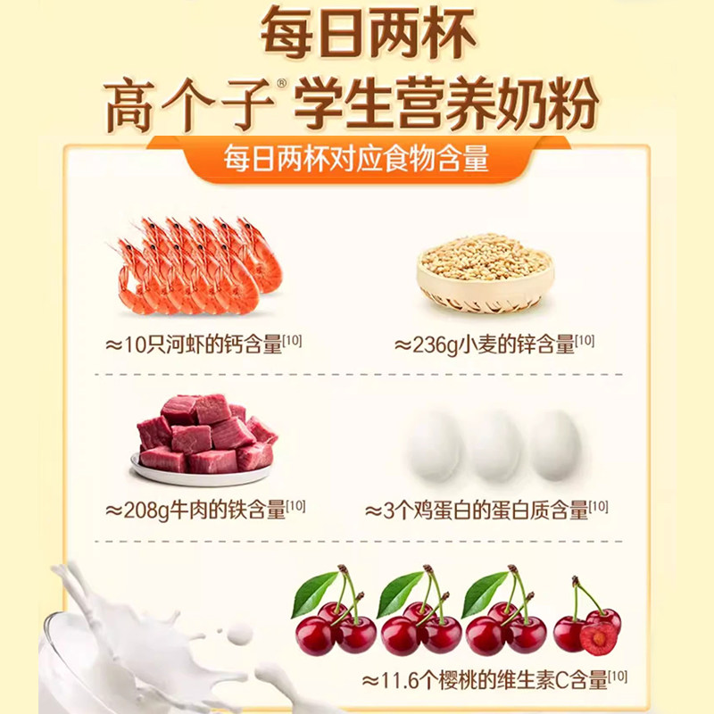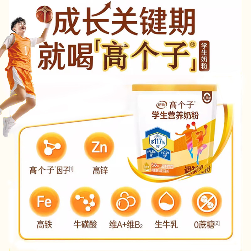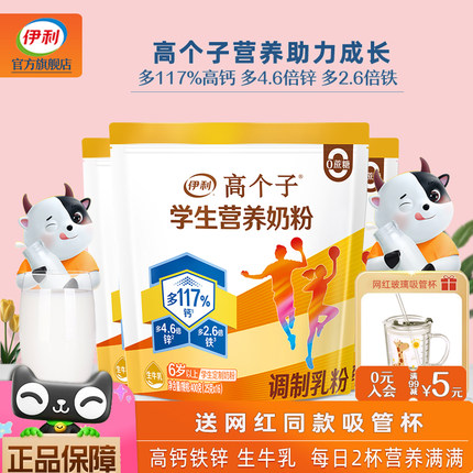 伊利高个子学生营养奶粉儿童青少年成长初高中生高钙铁锌早餐牛奶