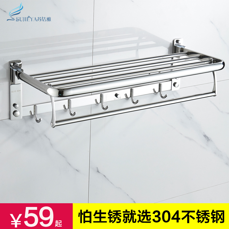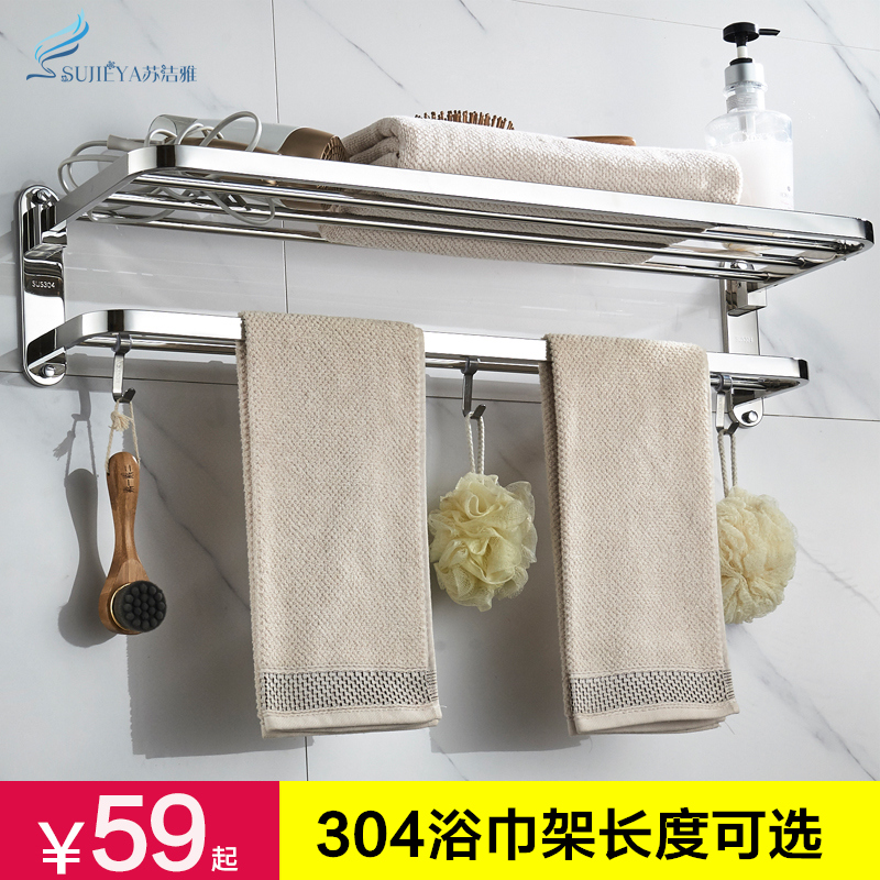 卫生间毛巾架不锈钢洗手间304浴巾架免打孔2层浴室置物架五金挂件