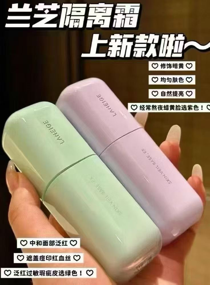 LANEIGE/兰芝新款提亮妆前乳三合一素颜神器防晒隔离霜遮瑕绿紫色
