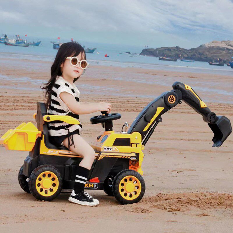 儿童挖掘车坐车电动遥控男女孩挖土勾