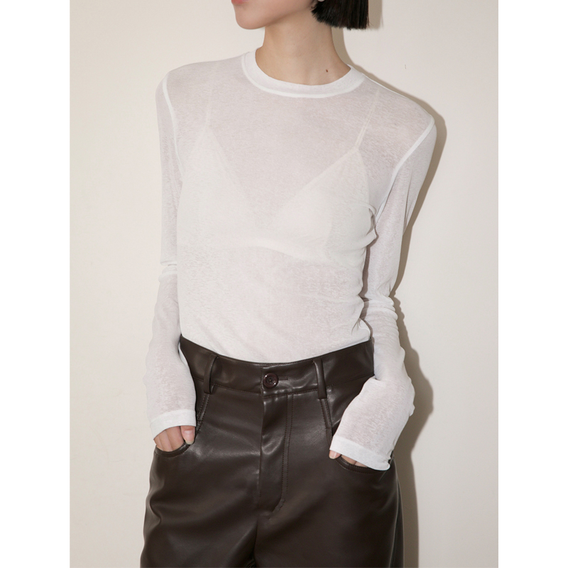 微透薄款性感冰纱长袖T恤春夏内搭透视设计感名媛修身打底上衣女