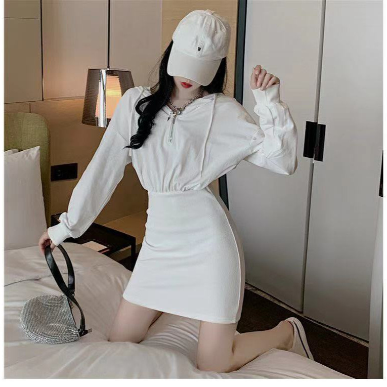 秋冬季2025新款轻熟风收腰显瘦小个子连衣裙女长袖连帽打底卫衣裙
