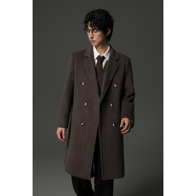 w2x简约潮流双面羊毛呢大衣冬季男款加厚风衣过膝中长款男士外套