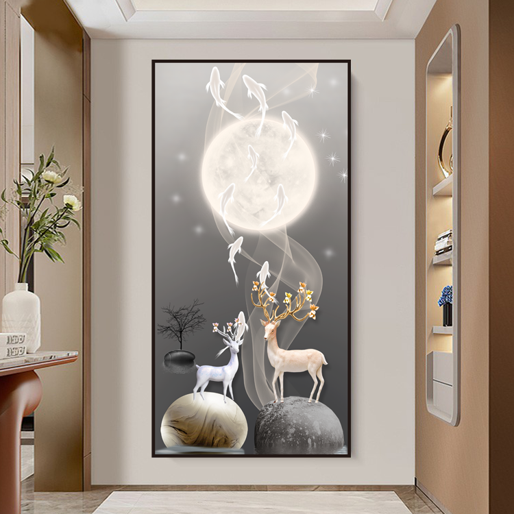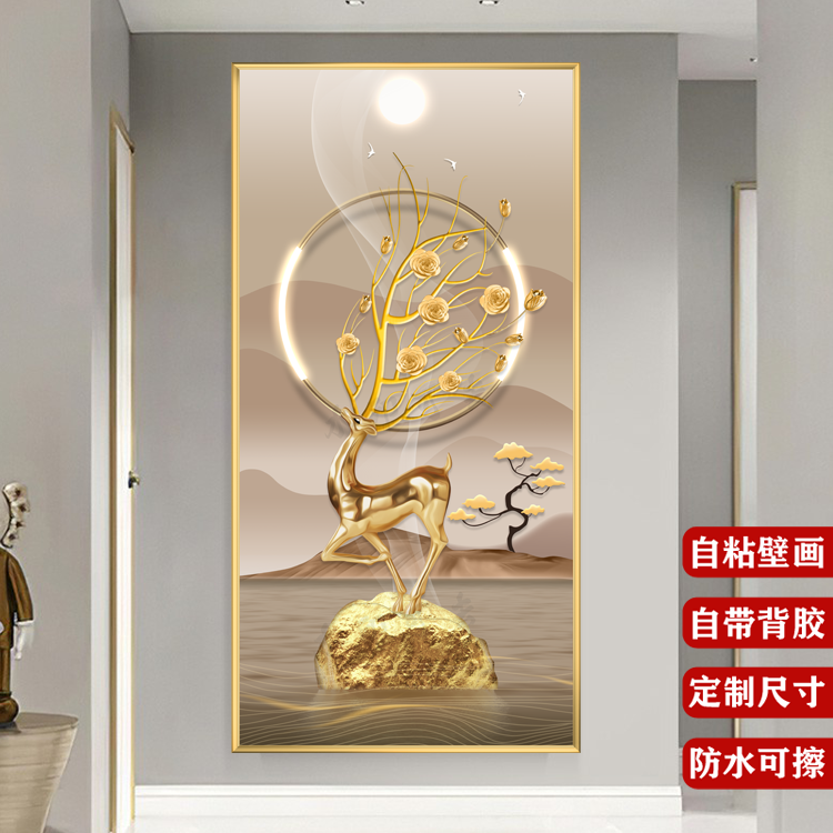 入户玄关装饰画现代轻奢自粘壁画客厅走廊过道背景墙贴画竖版壁纸