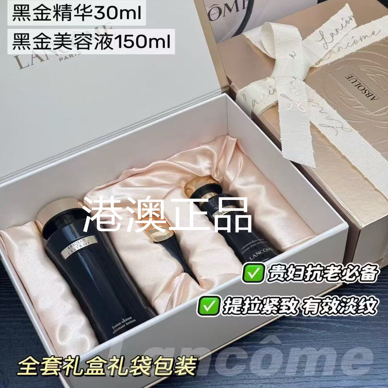 兰蔻黑金三件套面部护理黑金水面霜精华套装紧致抗皱礼盒装正品