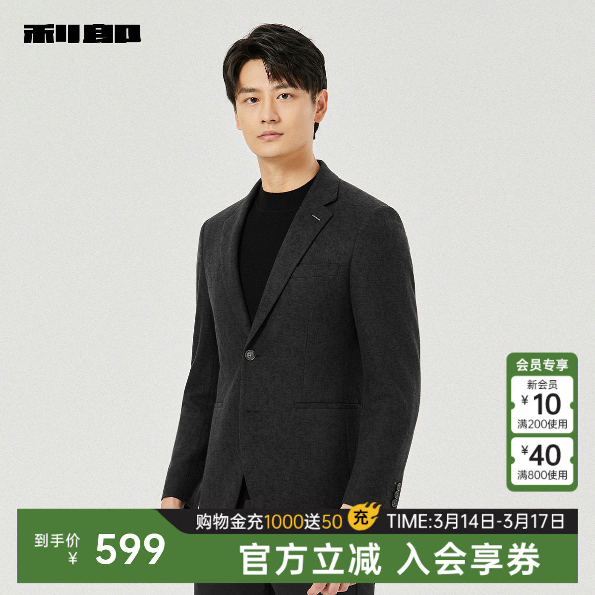 【含绵羊毛】利郎官方休闲西服男士春秋款新款修身男装单西外套