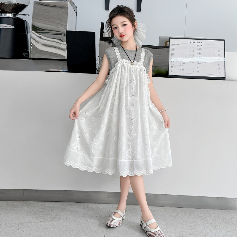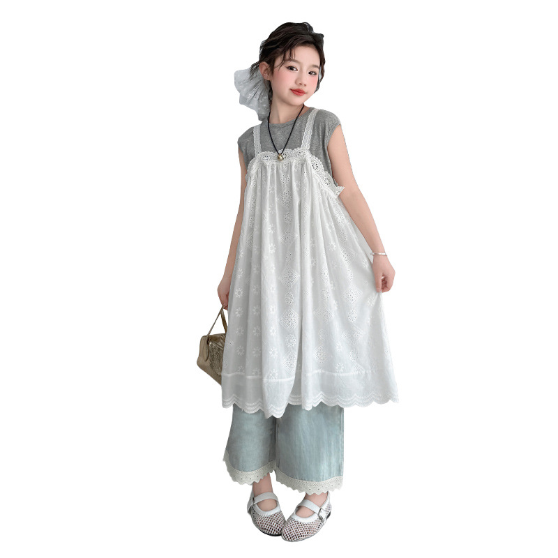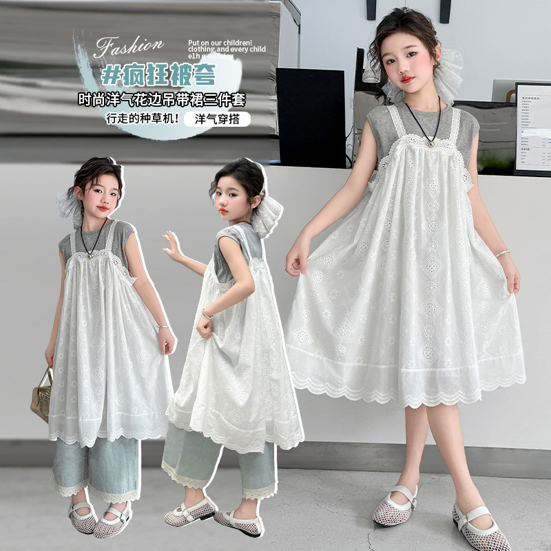 女童夏装连衣裙两件套2025新款森系儿童夏季薄款T恤吊带裙套装潮