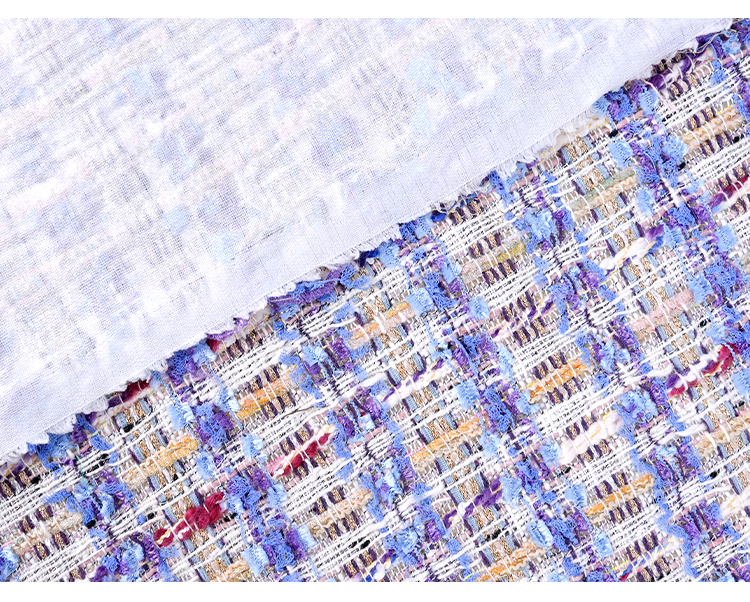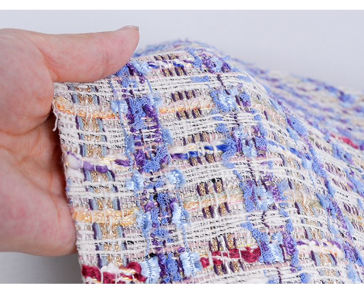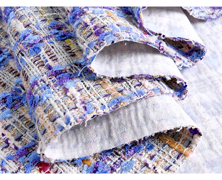 紫色小香风春秋粗纺布料 紫色金丝编织面料套装外套DIY手工布
