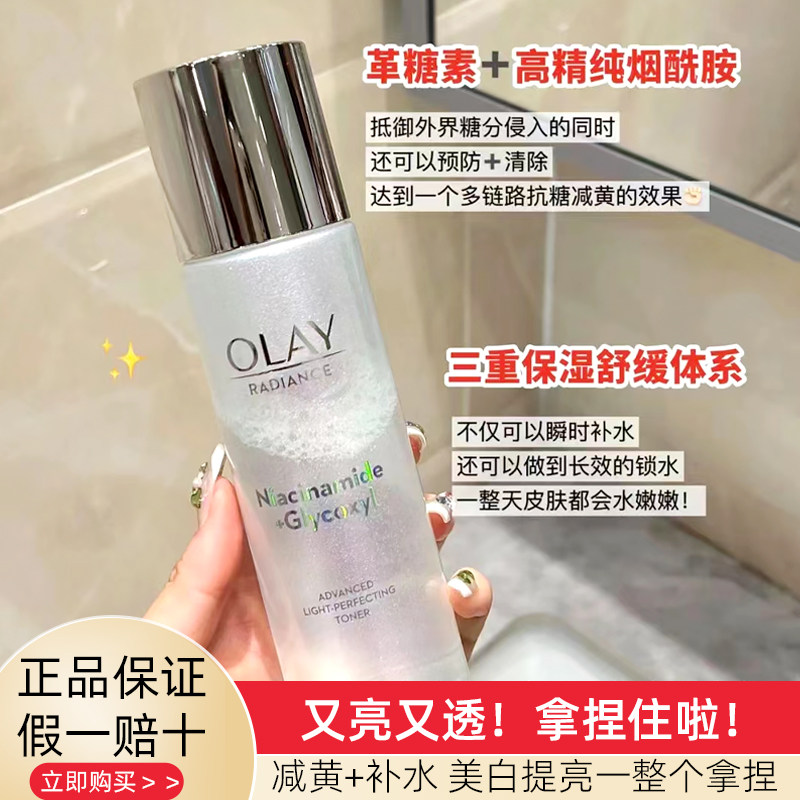 olay玉兰油水感透白光塑面膜水补水抗糖美白水only光耀精华爽肤水