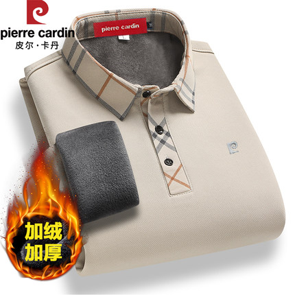 皮尔卡丹高档男士加绒桑蚕丝长袖T恤冬季加厚保暖打底polo衫