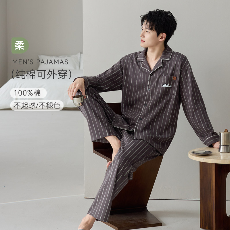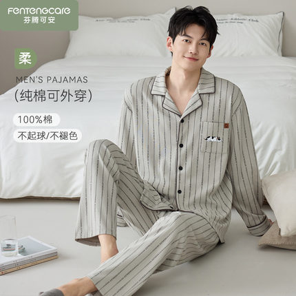 芬腾可安纯棉睡衣春秋季男款长袖秋冬款2025新款男士家居服可外穿