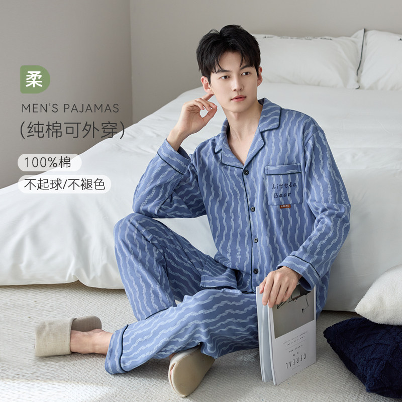 春秋季男款长袖纯棉睡衣可外穿