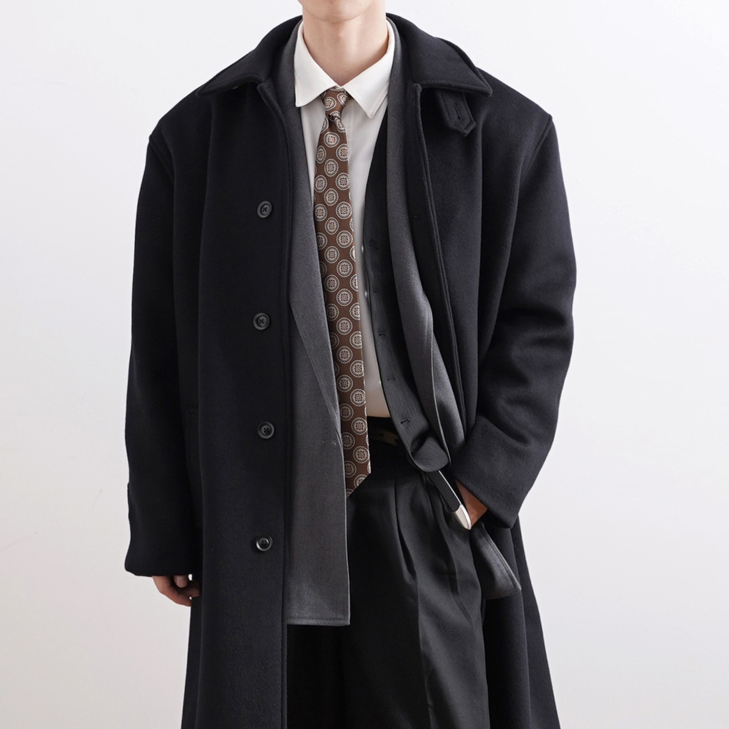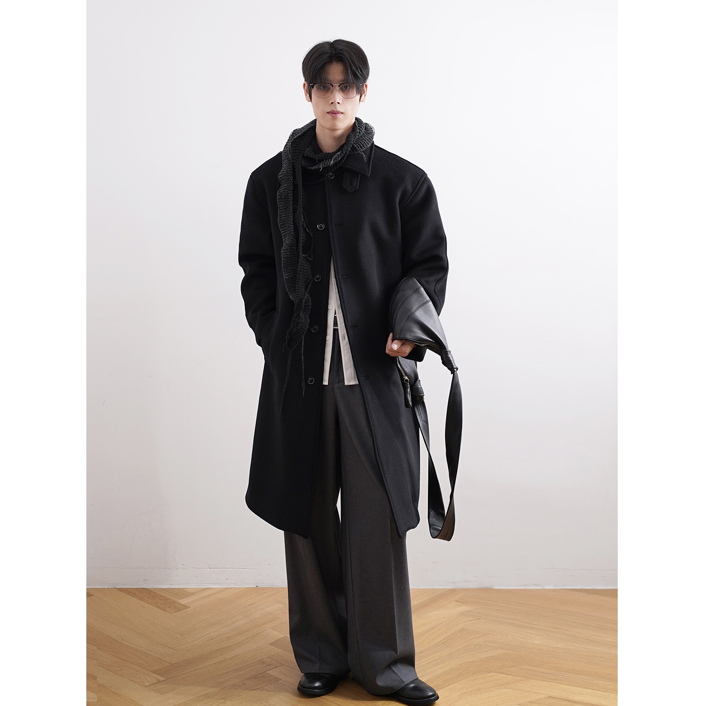 SHIJOIN原创 黑色巴尔马肯大衣羊毛中长款毛呢风衣外套秋冬200400