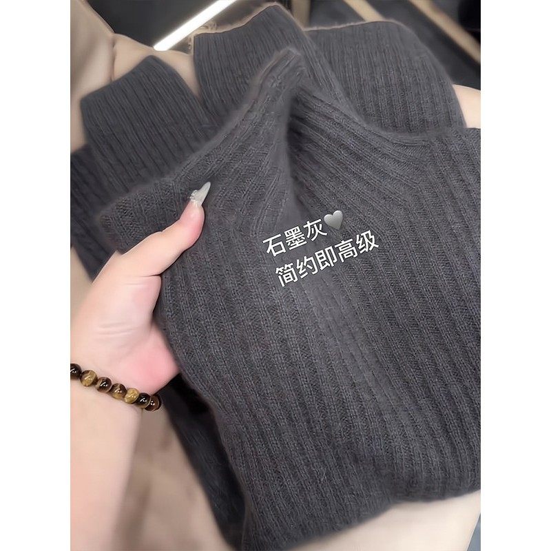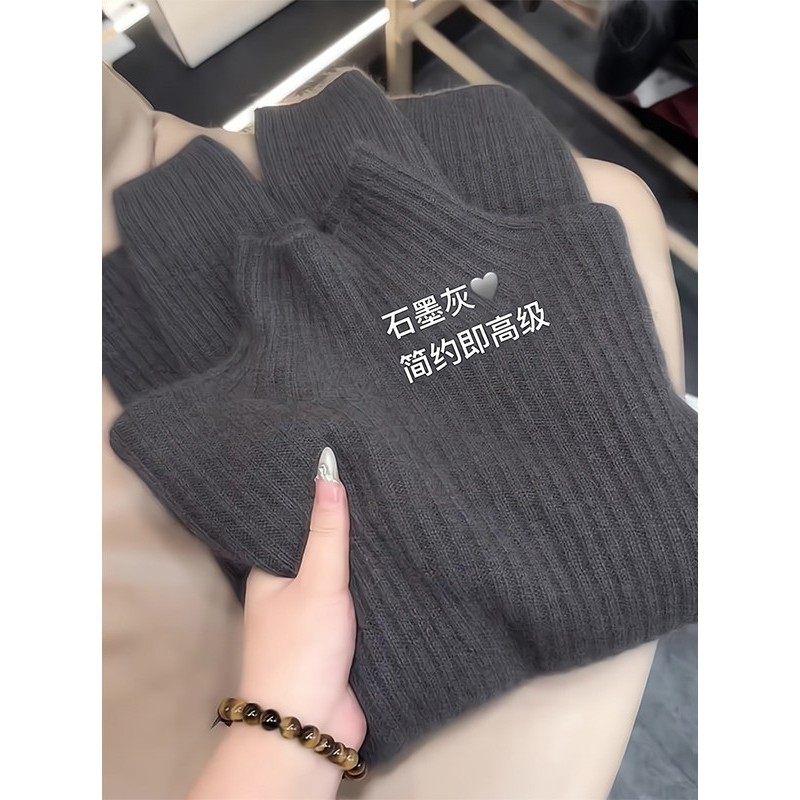 格雷系时髦灰色半高领针织衫女秋冬2025新款洋气独特别致宽松毛衣