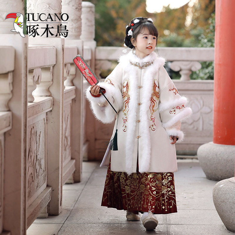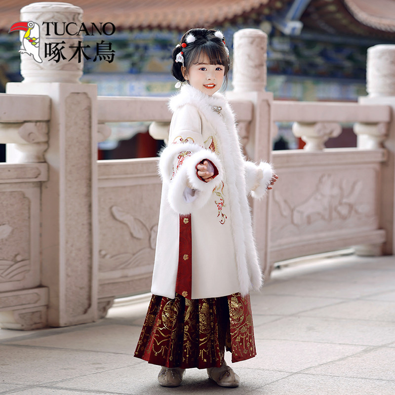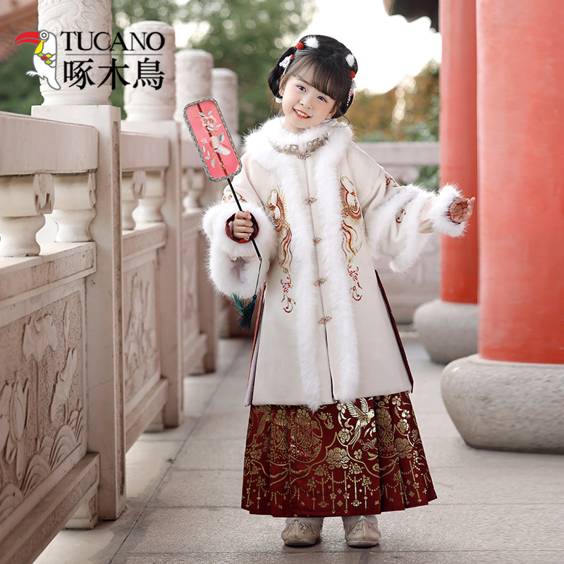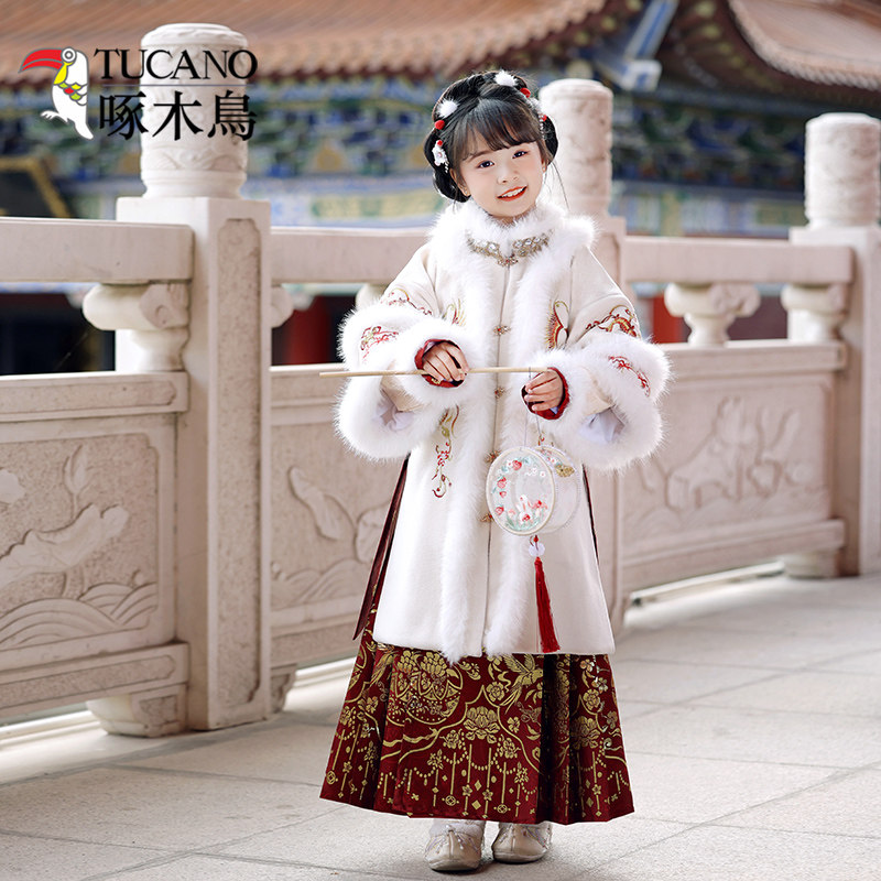 女童汉服套装明制马面裙过年服马年宝宝新年加厚唐装拜年服棉袄新