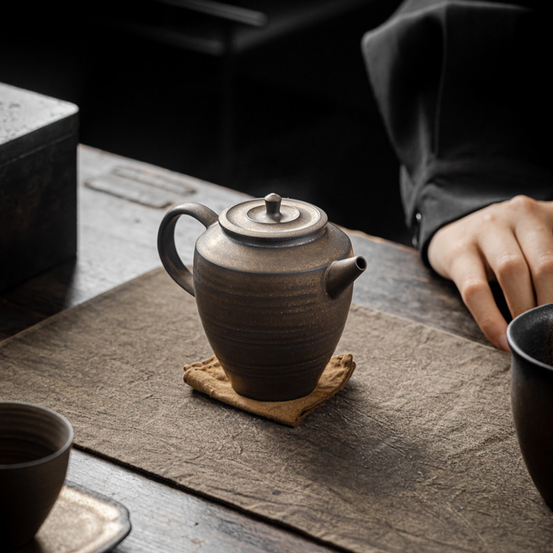 陶瓷茶壶单壶泡茶家用耐热鎏金铁釉功夫茶具套装大容量鎏银复古