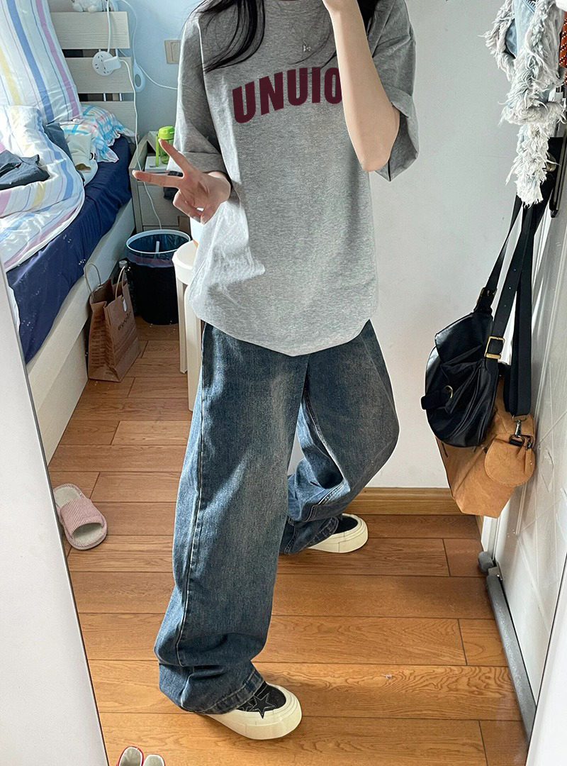 夏季大码纯棉T恤女宽松复古字母胖MM慵懒ins港味潮牌中长款半袖衫