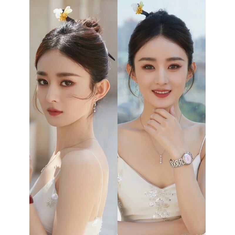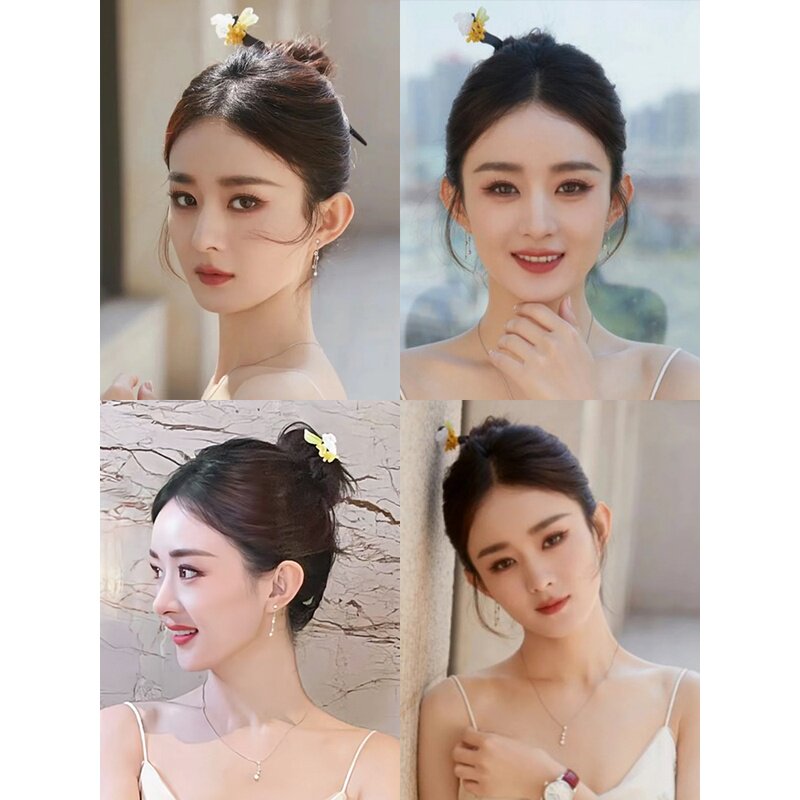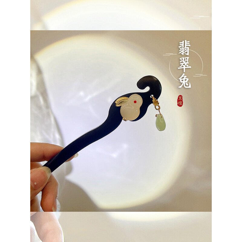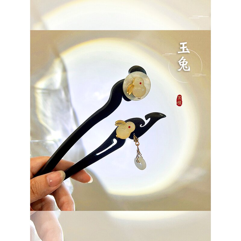 明星同款发簪新中式步摇发叉古风檀木盘发器钗子现代簪子头饰女