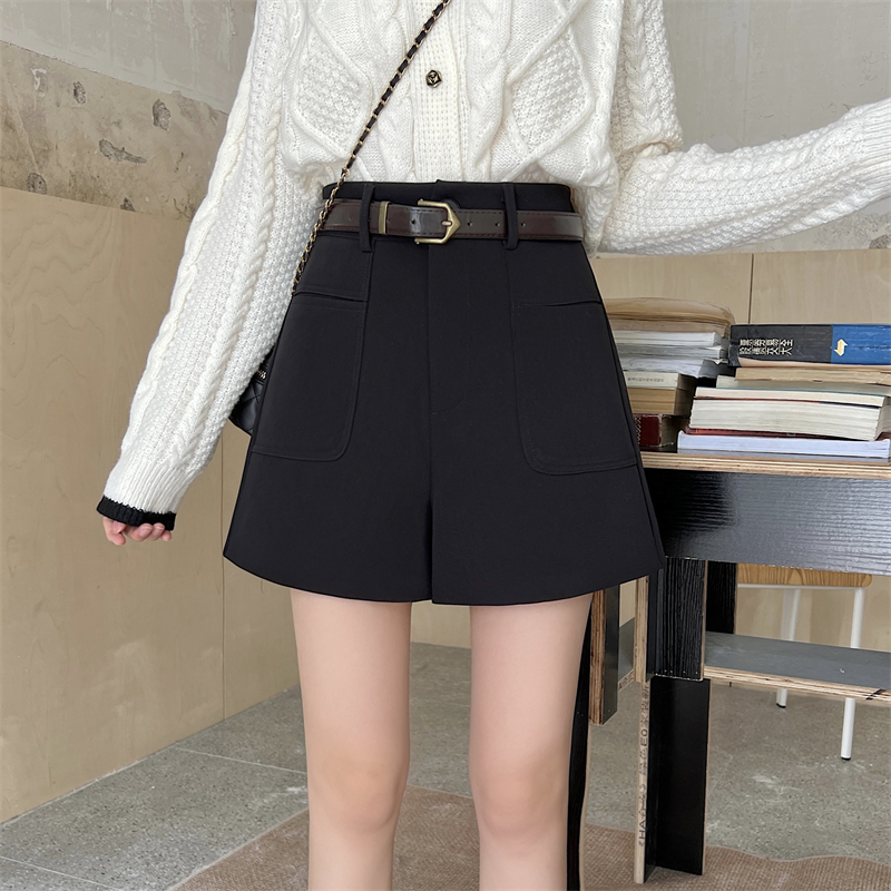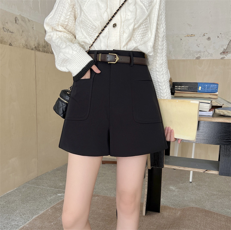 黑色西装短裤女2025秋冬胖mm不卡裆显瘦高腰休闲裤子阔腿打底靴裤