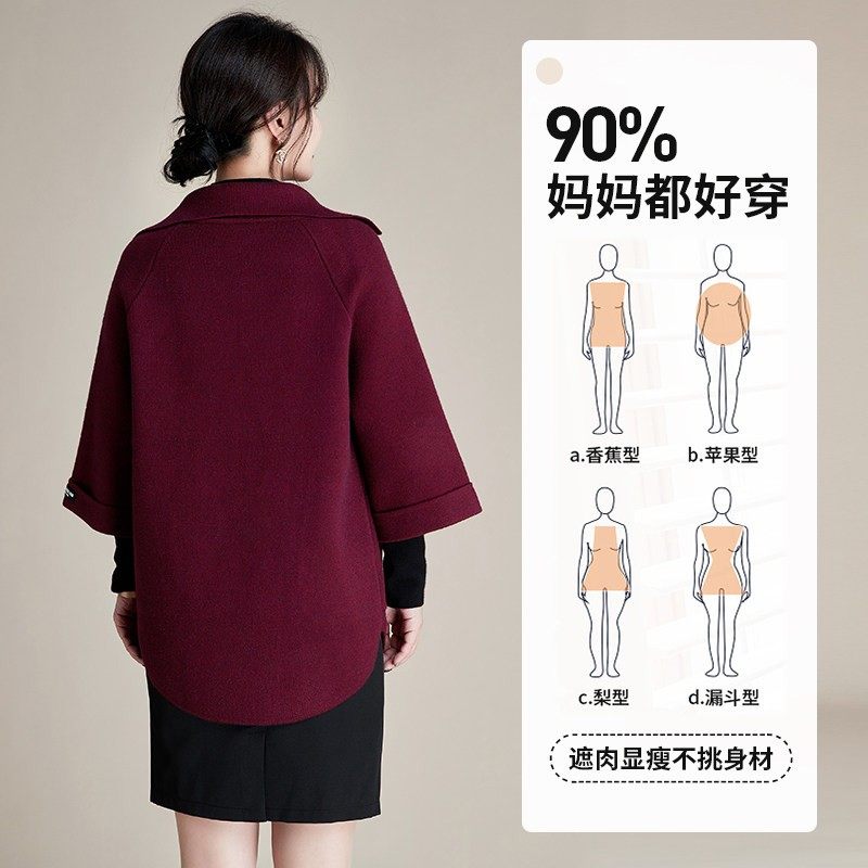 妈妈春秋外套洋气大码毛呢2025春装新款40岁50中老年女秋冬季风衣