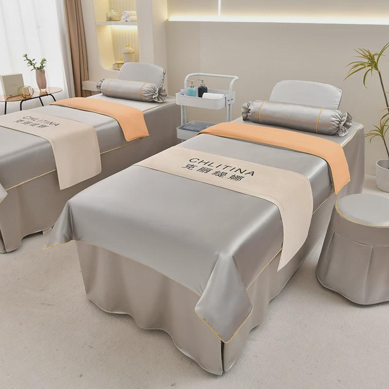 高档美容床罩四件套轻奢纯色美容院按摩推拿洗头床单床套四季通用