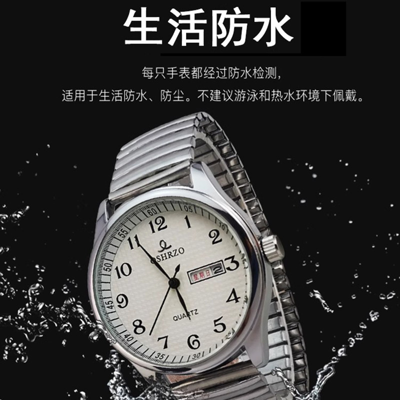 正品中老年人手表松紧带双日历