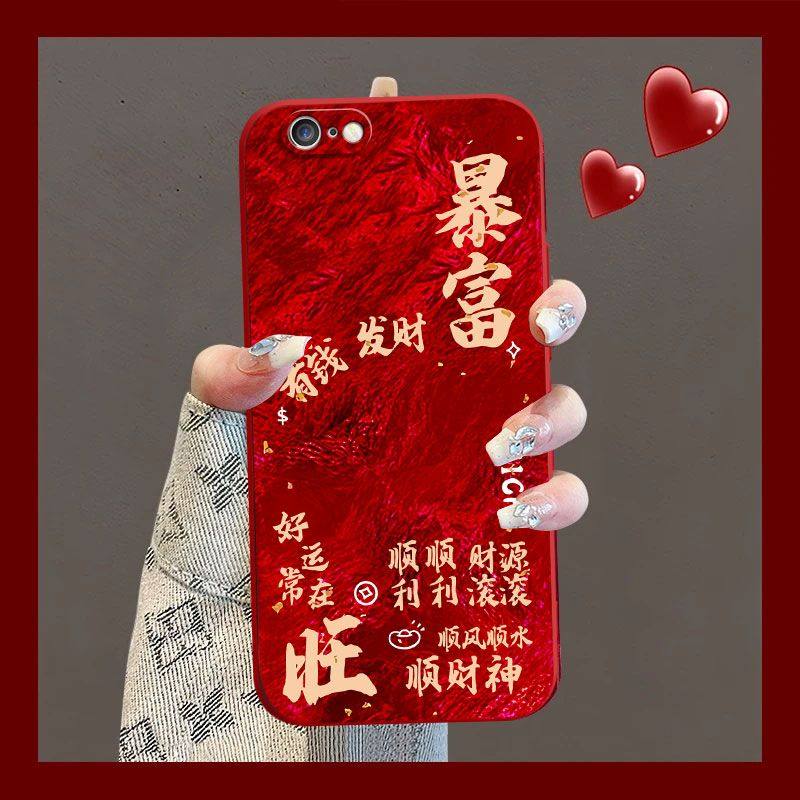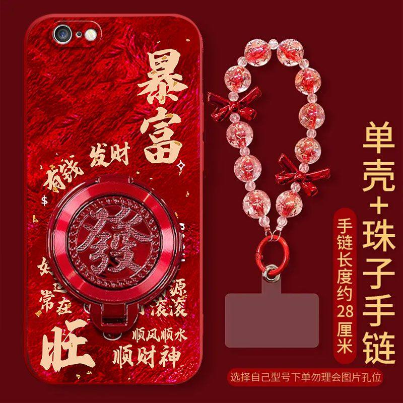 适用苹果6splus手机壳红色A1690软硅胶iPhone6保护套a1586新年女款ip6s全包边防摔A1700支架pg6pius手链a1524
