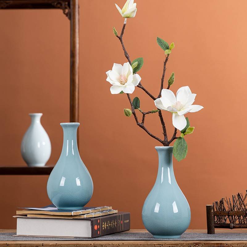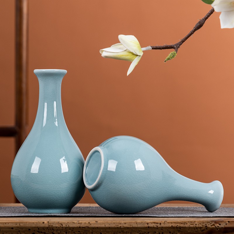 彷古汝窑陶瓷花瓶瓷器玉壶春青瓷中式简约古典客厅博古架装饰摆饰