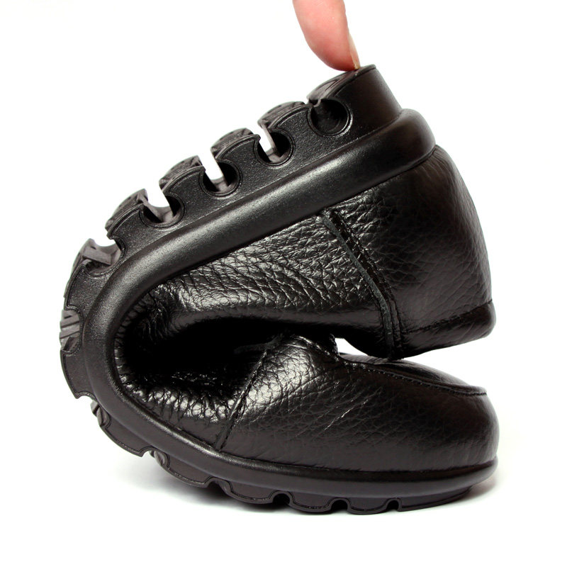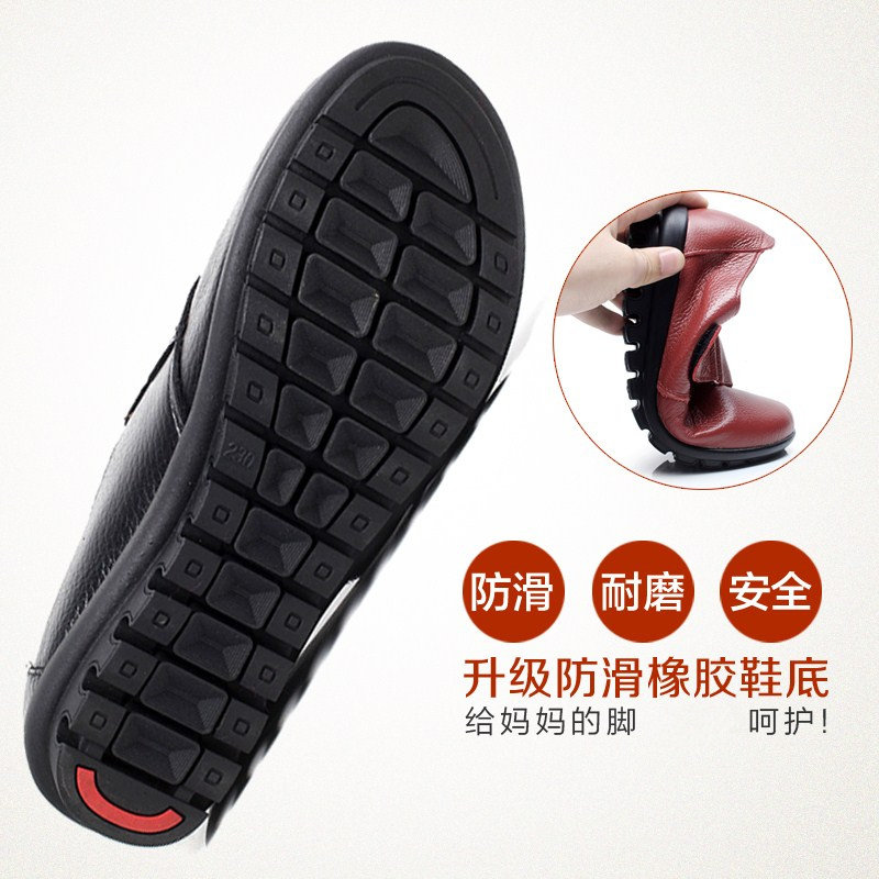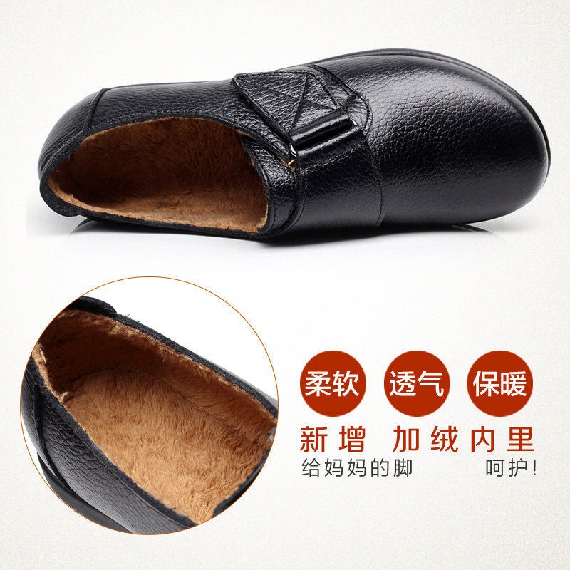 秋冬真皮妈妈鞋加绒平跟中老年单鞋软底防滑大码舒适女鞋老人皮鞋