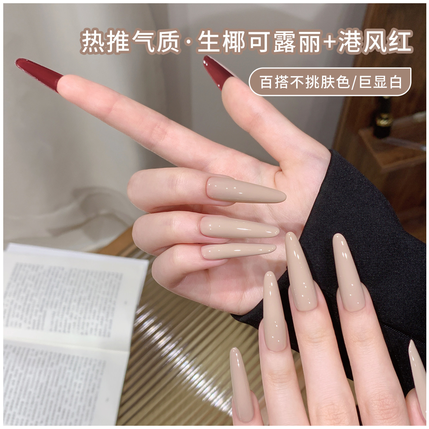秋冬显白红底高跟鞋裸色指甲油胶2026年新款港风红色美甲套装全套
