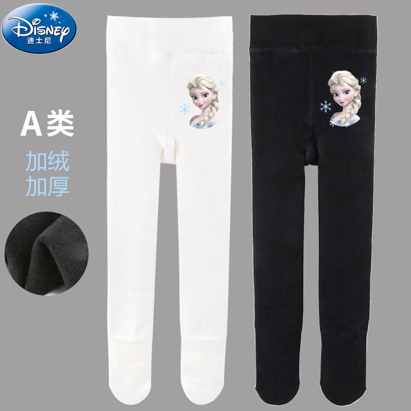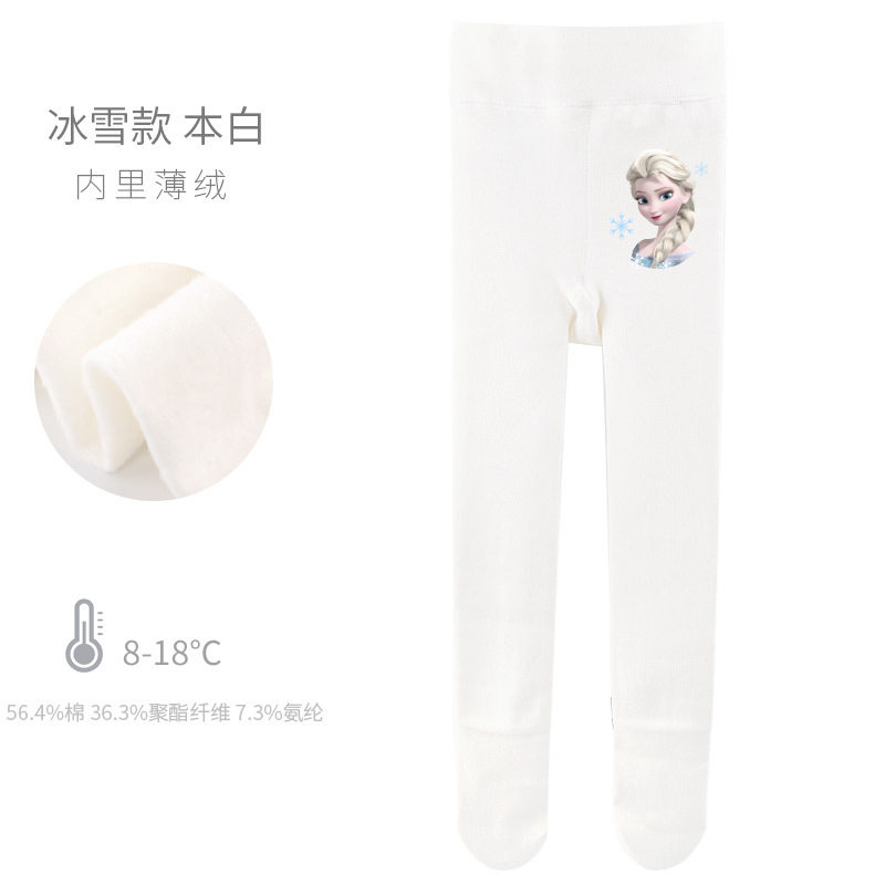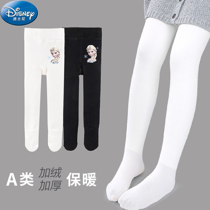 迪士尼儿童连裤袜女童秋冬季加绒加厚白色舞蹈女孩冰雪公主打底裤