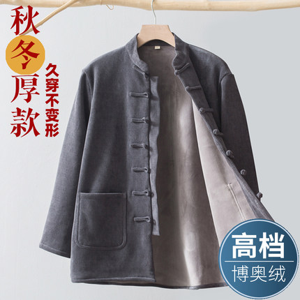 秋冬季唐装男加绒加厚外套
