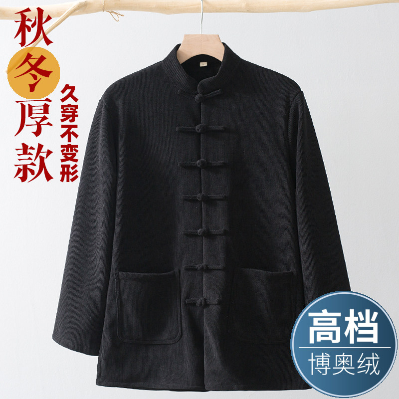秋冬季唐装男加绒加厚外套青中年中国风中式复古男装盘扣棉衣上衣