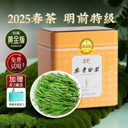 五虎正宗安吉白茶2025新茶特级绿茶茶叶春茶长辈礼盒装送礼散茶