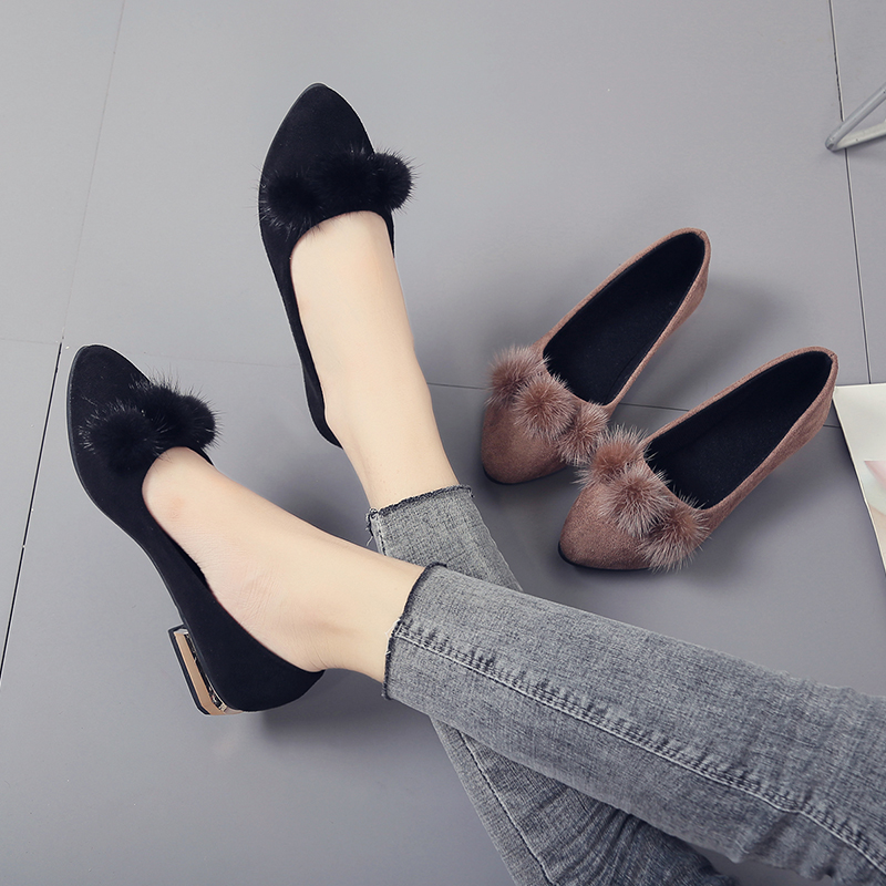 2025秋冬新款平跟毛毛鞋女棉瓢鞋单鞋加绒外穿尖头平底豆豆鞋单鞋