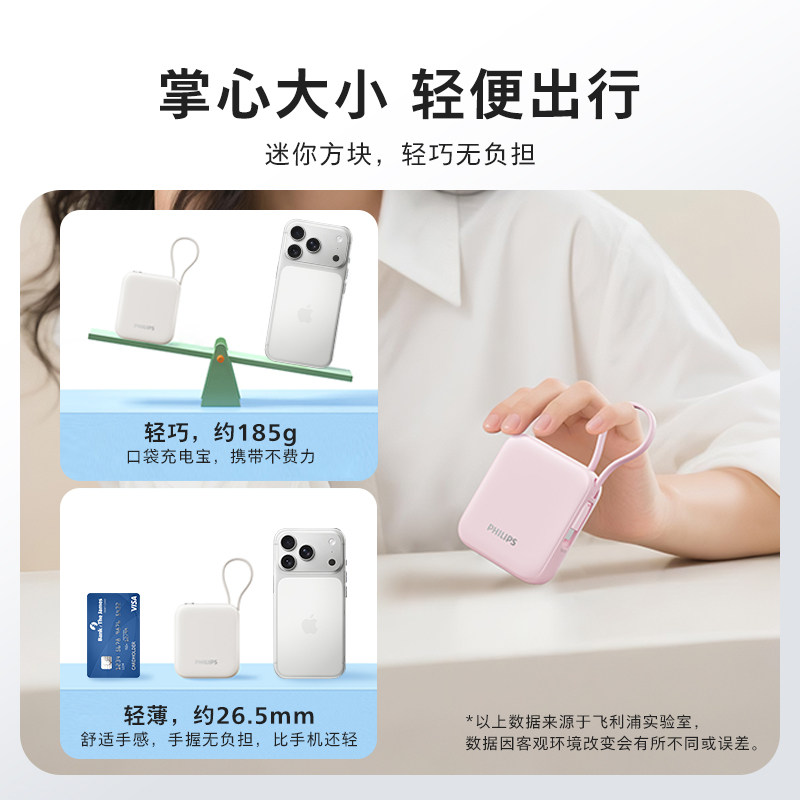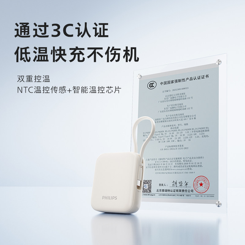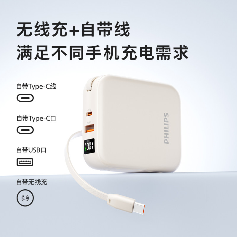【3C认证】飞利浦磁吸无线充电宝10000毫安自带线22.5W大容量迷你便携移动电源适用华为小米苹果17可上飞机